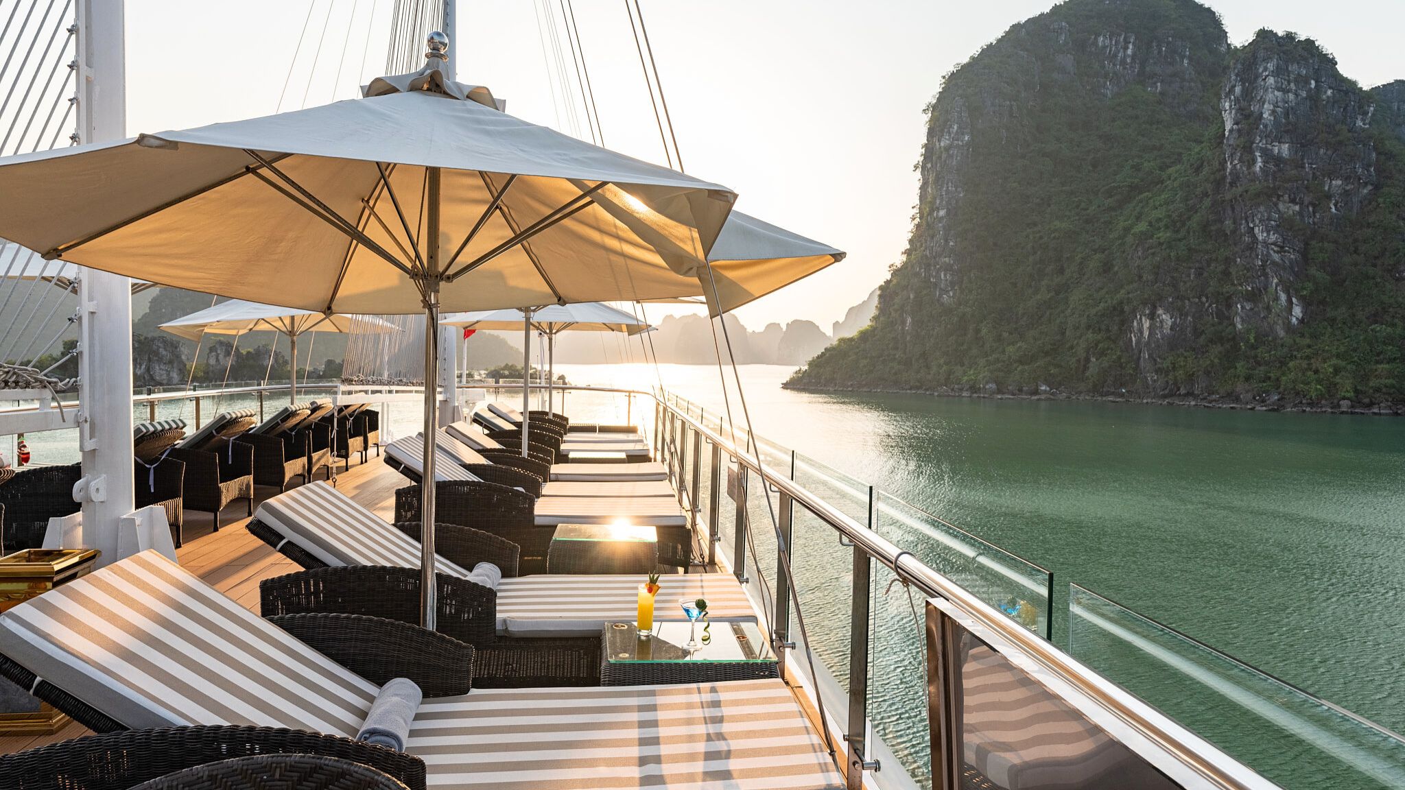 Relax and unwind at the sunset party as you enjoy a break while cruising back to Tuan Chau Marina. This is a wonderful time to take in the breathtaking views of the sunset over the bay, creating lasting memories of your trip.